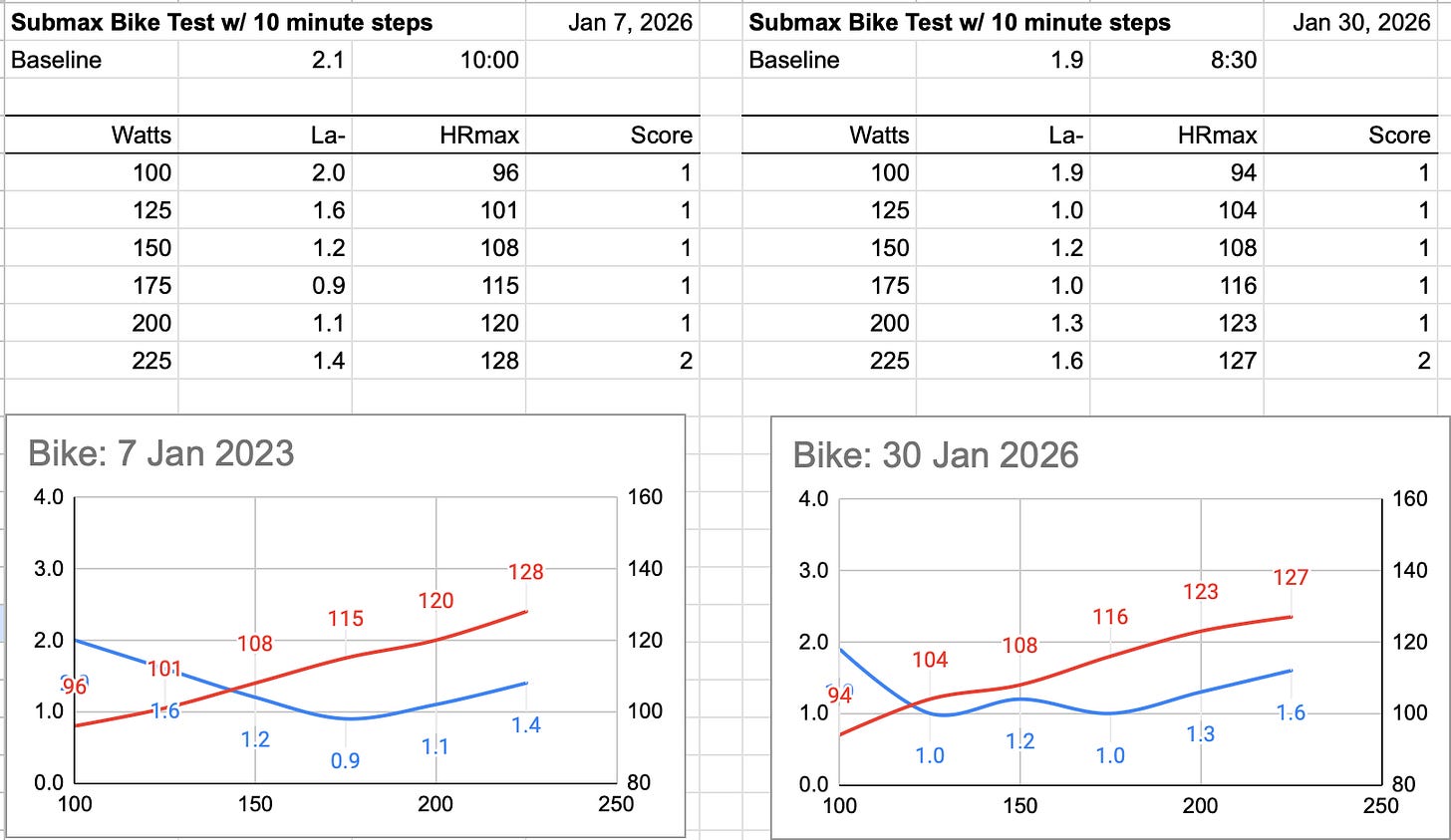At this point, I want you to do a Submax Test and compare the results (HR and Lactate) to your most recent healthy baseline test.